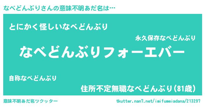| ポケモン風あだ名 | 『ナベドダネ』『ヒナベドンブリ』 |