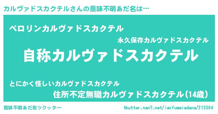 | 男性向けラノベタイトル風あだ名 | 『魔法科高校のカルヴァドスカクテル』 |