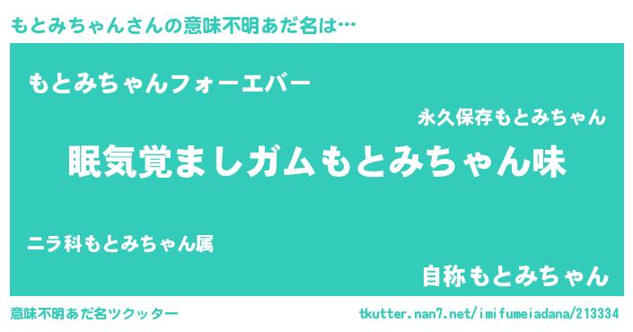 | 男性向けラノベタイトル風あだ名 | 『おまえをオタクにしてやるから、俺をもとみちゃんにしてくれ! 』 |