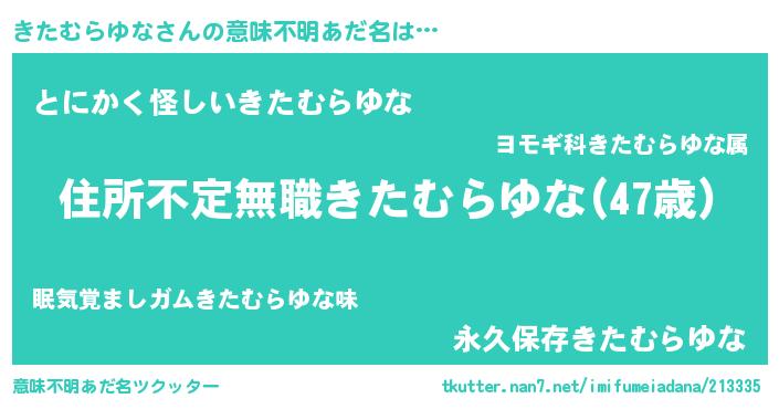 | ヘコむあだ名 | 『きたっ子』『きたむらゆな(笑)』 |