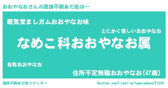 | 男性向けラノベタイトル風あだ名 | 『転生したらおおやなおだった件』 |