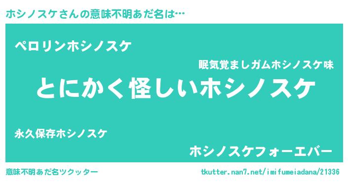 | 男性向けラノベタイトル風あだ名 | 『ホシノスケの嫁は女の子じゃないと思った?』 |