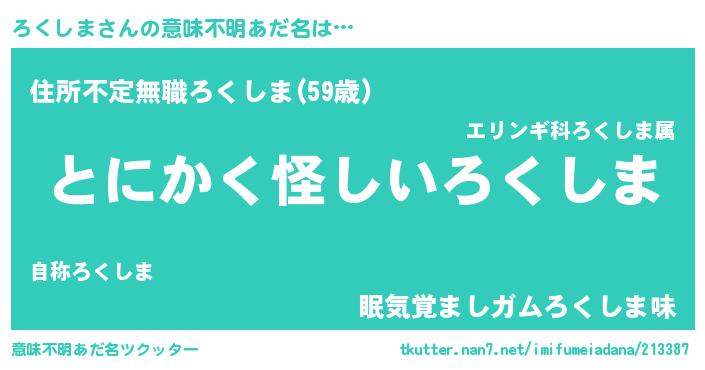 | 男性向けラノベタイトル風あだ名 | 『ろくしまに滅ぼされるだけの簡単なお仕事です』 |