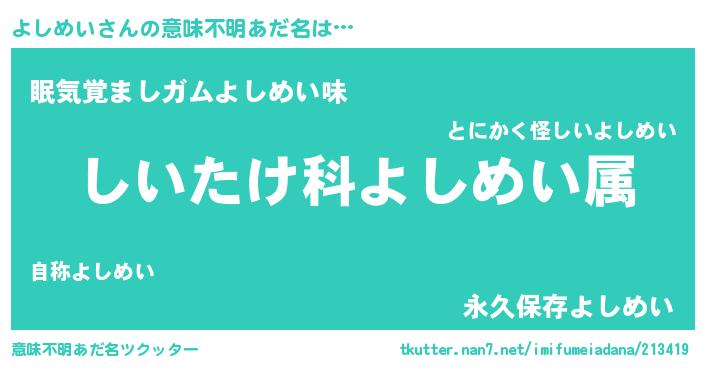 | ヒーロー風カッコイイあだ名 | 『正義の使者よしめい』『ネオヨシメイ』 |