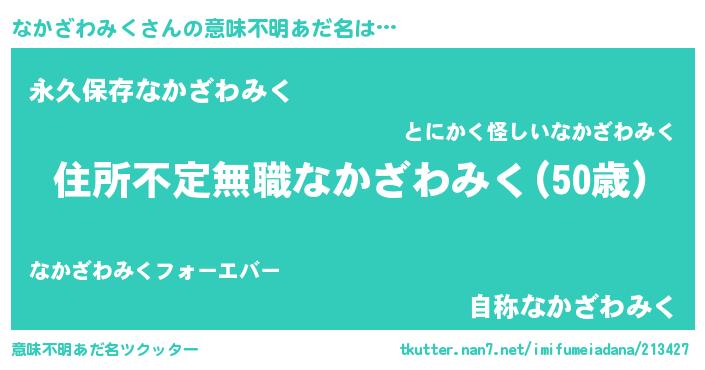 | ヘコむあだ名 | 『なかざわみく(笑)』『なかお』 |