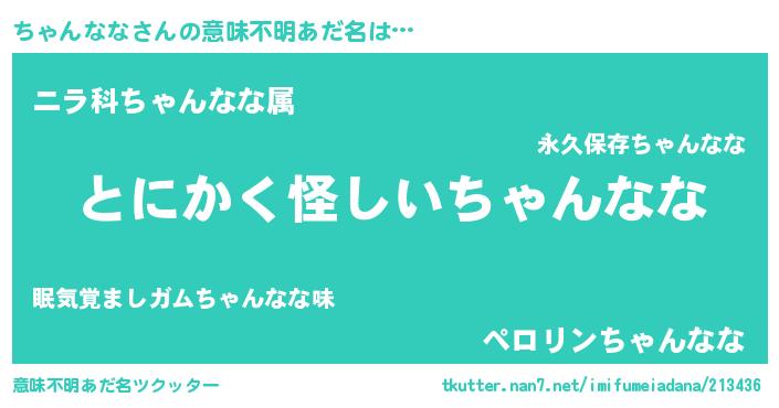 | 胡散臭い通販商品みたいなあだ名 | 『伝統あるサプリメント…その名も「ちゃんなな」』 |