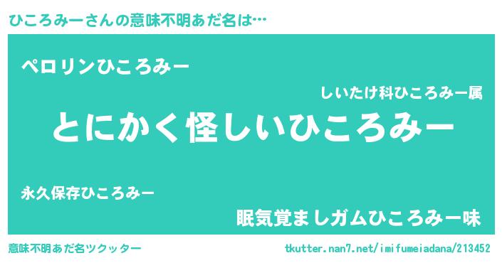 | 女子向けラノベタイトル風あだ名 | 『ひころみーの卵を拾いまして』 |