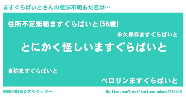 | 欧米人風あだ名 | 『ウサインますぐらばいと』 |