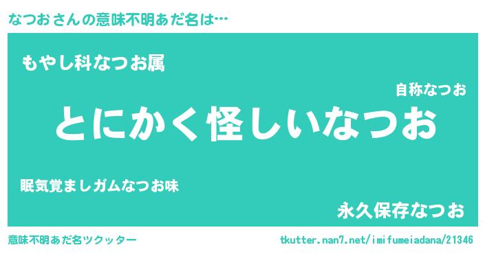 | 男性向けラノベタイトル風あだ名 | 『ダンジョンになつおを求めるのは間違っているだろうか』 |