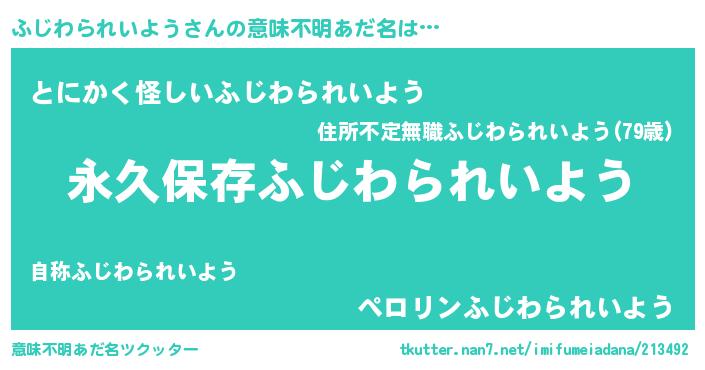 | ヘコむあだ名 | 『ふじわられいよう(笑)』『ふじっちょ』 |