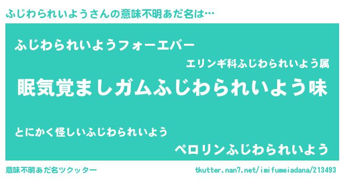 | 伝説のあだ名 | 『人々から恐れられる錬金術士ふじわられいよう』 |