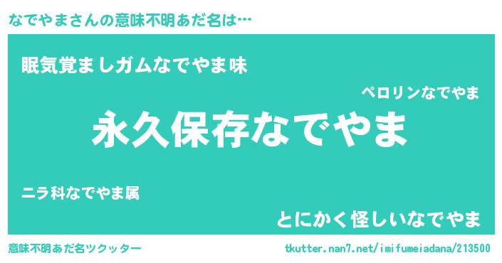 | 男性向けラノベタイトル風あだ名 | 『なでやまという概念が存在しない退屈な世界 』 |