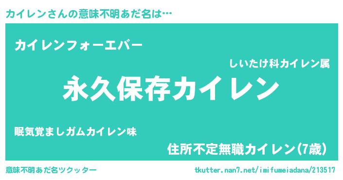 | 男性向けラノベタイトル風あだ名 | 『カイレンという概念が存在しない退屈な世界 』 |