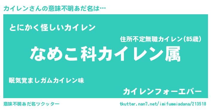 | 男性向けラノベタイトル風あだ名 | 『転生したらカイレンだった件』 |