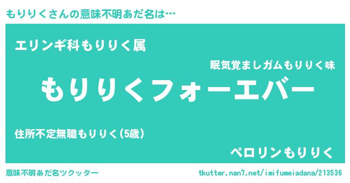 | 欧米人風あだ名 | 『もりりくクリステル』 |