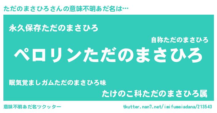 | ヘコむあだ名 | 『ただにゅー』『ただのまさひろ(笑)』 |