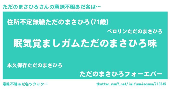 | 男性向けラノベタイトル風あだ名 | 『ノーゲーム・ノータダノマサヒロ』 |