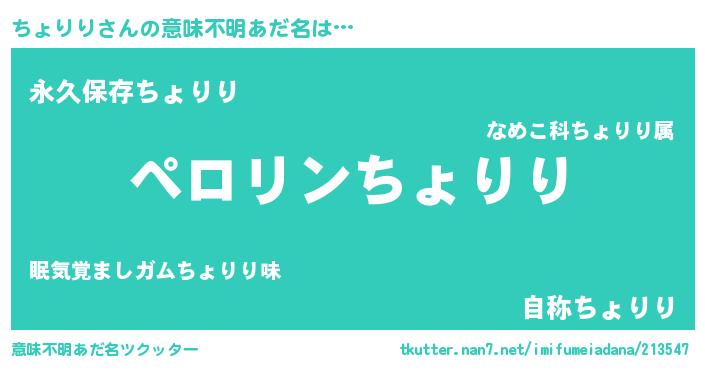 | 胡散臭い通販商品みたいなあだ名 | 『モテモテ間違いなし水晶球…その名も「ちょりり」』 |