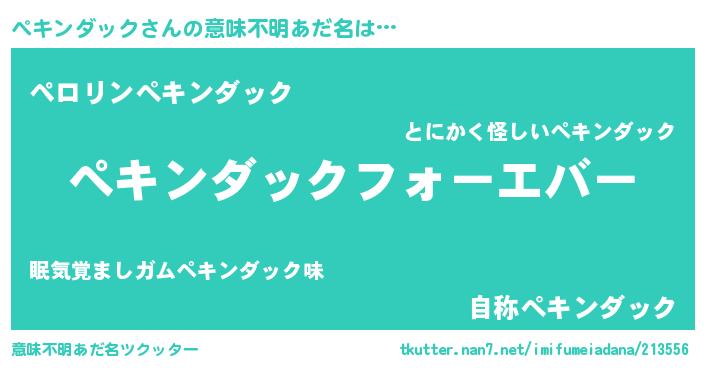 | 男性向けラノベタイトル風あだ名 | 『やはりぺキンダックの青春ラブコメはまちがっている 』 |