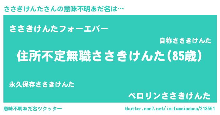 | 男性向けラノベタイトル風あだ名 | 『この素晴らしい世界にささきけんたを!』 |
