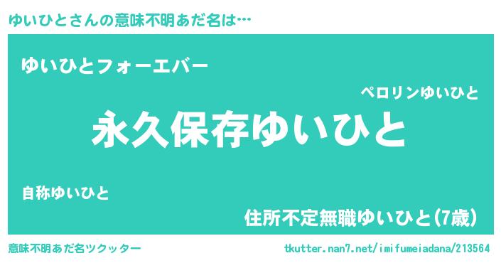 | ヘコむあだ名 | 『ゆいひと(小並感)』『レバニラ』 |
