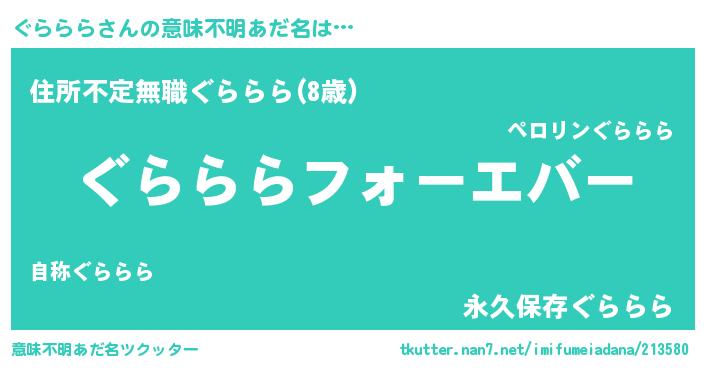 | 女子向けラノベタイトル風あだ名 | 『ぐらららの雑貨屋さん』 |