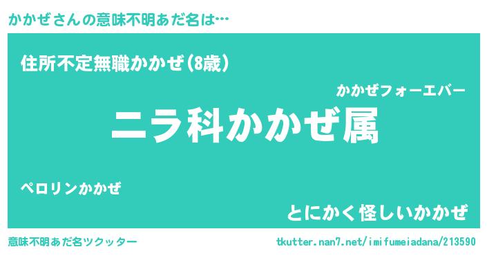 | 男性向けラノベタイトル風あだ名 | 『かかぜ~年齢イコール彼女いない歴の魔法使い~』 |