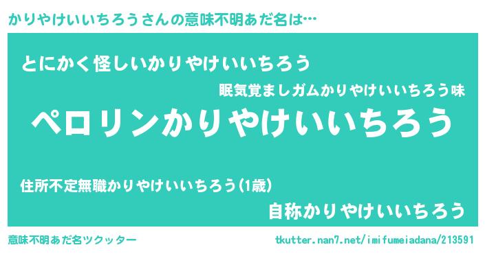 | 男性向けラノベタイトル風あだ名 | 『かりやけいいちろうの憂鬱』 |