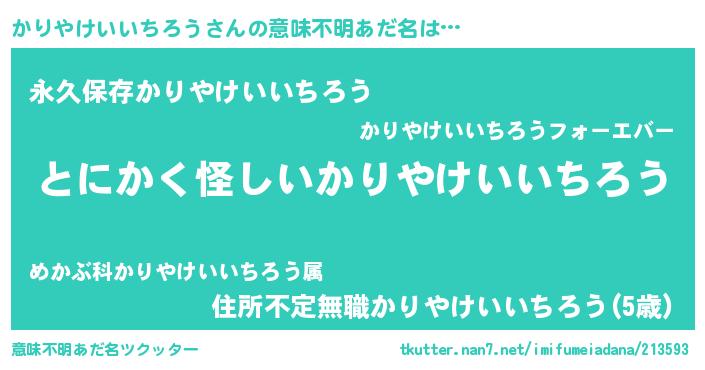 | ヘコむあだ名 | 『かりお』『かりやけいいちろう(小並感)』 |