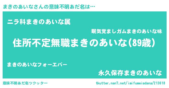 | 伝説のあだ名 | 『聞きしに勝る勇者まきのあいな』 |