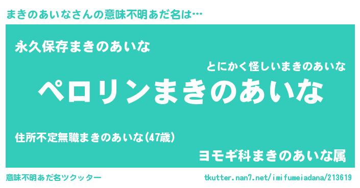 | 恥ずかしいあだ名 | 『プリティーまきのあいな』『まきちん』 |