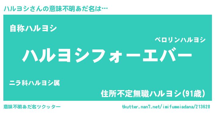 | ファンタジー風あだ名 | 『エターナルハルヨシー』『ゼハルトゥ』 |