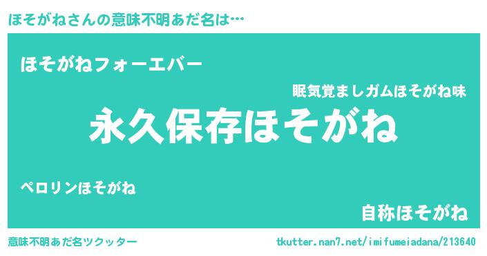 | 女子向けラノベタイトル風あだ名 | 『異世界でカフェほそがねを開店しました。』 |