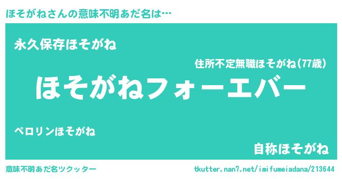 | ファンタジー風あだ名 | 『エターナルホソガネー』『ゼホソトゥ』 |