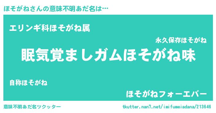 | 女子向けラノベタイトル風あだ名 | 『ほそがね恋絵巻』 |