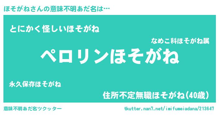 | 胡散臭い通販商品みたいなあだ名 | 『億万長者になれる霊験あらたかなお札…その名も「ほそがね」』 |