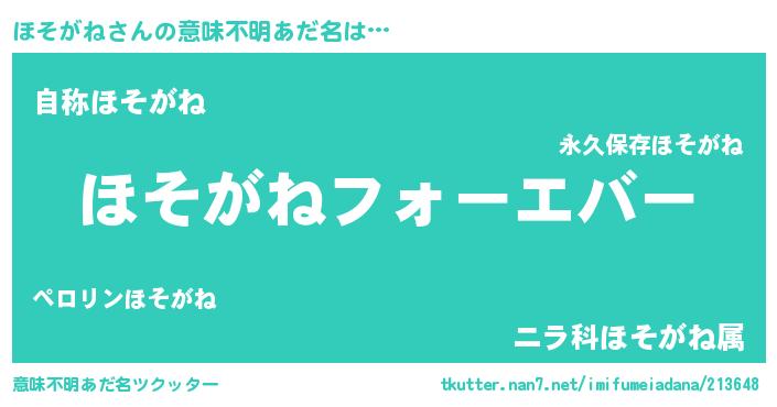 | 恥ずかしいあだ名 | 『ほそっちょ』『ホソガネデラックス』 |