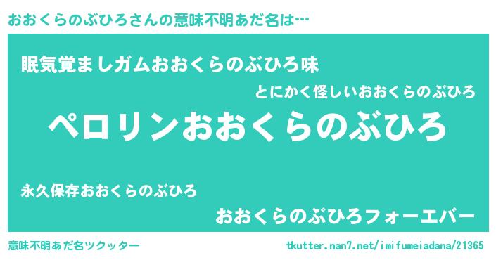 | 伝説のあだ名 | 『伝説のスナイパーおおくらのぶひろ』 |