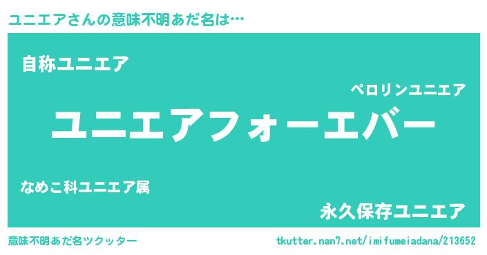 | 男性向けラノベタイトル風あだ名 | 『緋弾のユニエア』『ユニエアの憂鬱』 |