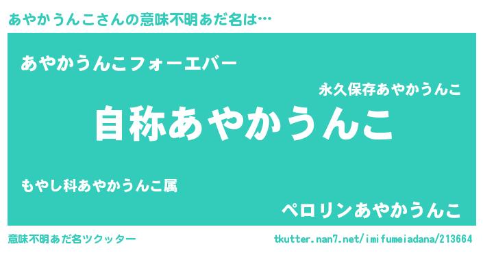 | 女子向けラノベタイトル風あだ名 | 『あやかうんこストレイドッグス』 |