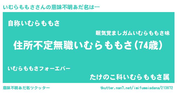 | 男性向けラノベタイトル風あだ名 | 『魔弾の王といむらももさ』 |
