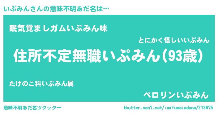 | 胡散臭い通販商品みたいなあだ名 | 『あなたにだけ特別に提供する世界で10本だけ現存している希少なブランデー…その名も「いぷみん」』 |