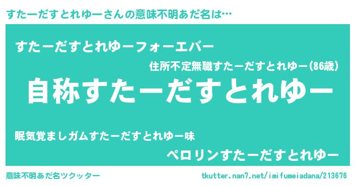 | 伝説のあだ名 | 『秘められし忍者すたーだすとれゆー』 |
