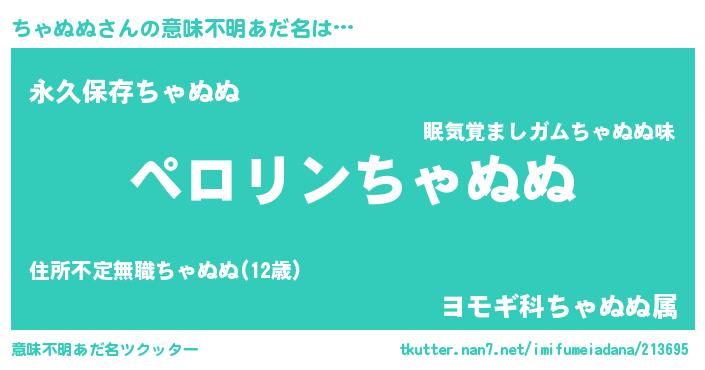 | 欧米人風あだ名 | 『マイケルちゃぬぬ』『ダニエルちゃぬぬ』 |