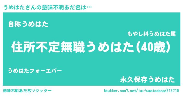| ヒーロー風カッコイイあだ名 | 『仮面ウメダー』『超時空戦士ウメハタ』 |