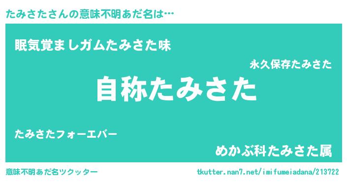 | 男性向けラノベタイトル風あだ名 | 『Re:たみさたから始める異世界生活』 |