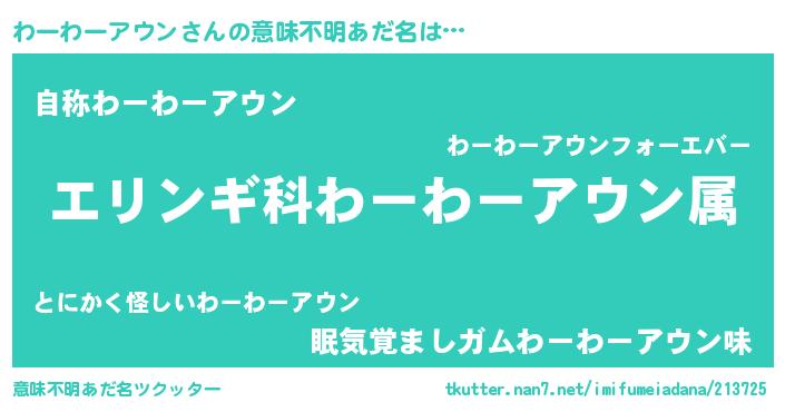 | 男性向けラノベタイトル風あだ名 | 『ワーワーアウンスレイヤー』 |