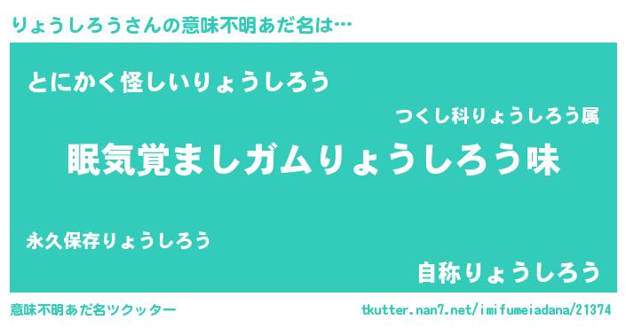 ヘコむあだ名 | 『りょお』『りょうしろう(笑)』 |