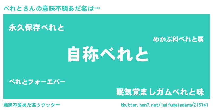 | 男性向けラノベタイトル風あだ名 | 『Re:べれとから始める異世界生活』 |