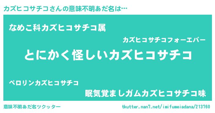 | ヒーロー風カッコイイあだ名 | 『暗黒騎士カズ』『ネオカズヒコサチコ』 |